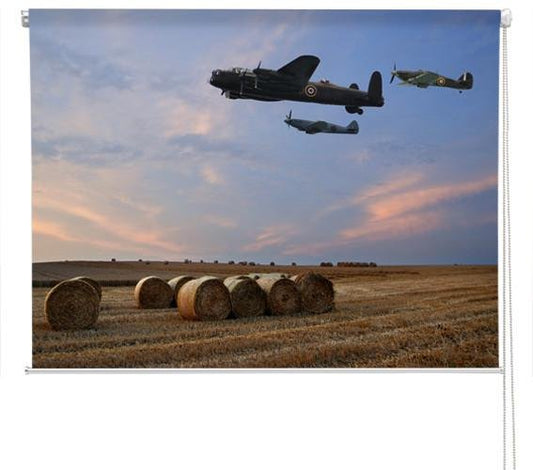 Lancaster bomber over the Hay Bales at sunset Printed Picture Photo Roller Blind - RB237