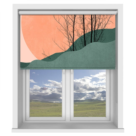 Sunset Memories Pink Peach Silhouette Printed Picture Photo Roller Blind - 1X2489436