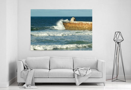 Atlantic waves at Portreath pier, Cornwall Printed Canvas Print Picture - SPC168