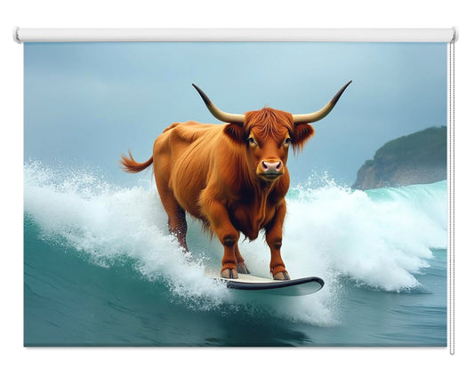 The Surfing Highland Cow Printed Picture Photo Roller Blind - RB1397