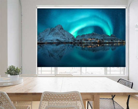 Blue Northern Lights Printed Picture Photo Roller Blind- 1X2054337