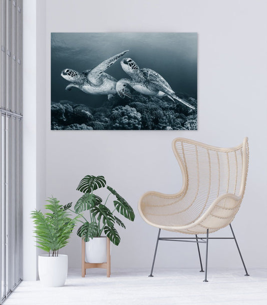 Twin dance Underwater Turtle Canvas Print Wall Art - 1X53696