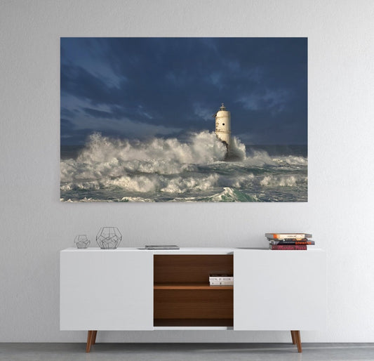 Ocean Waves over the Lighthouse Canvas Print Wall Art - 1X56630