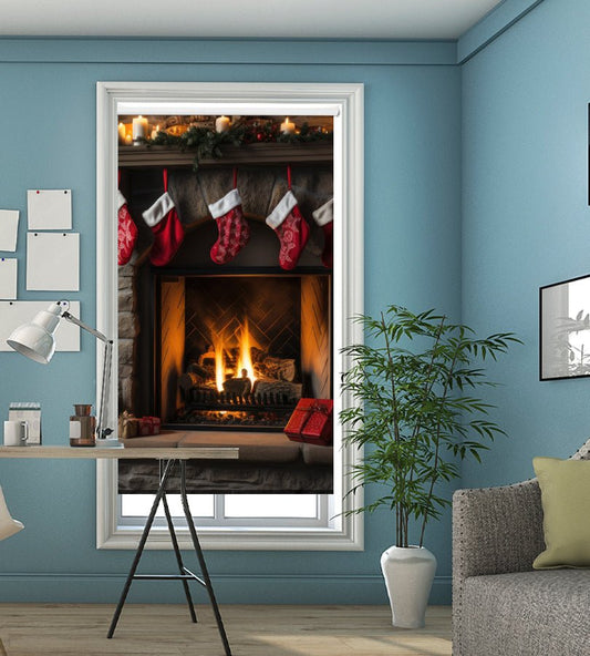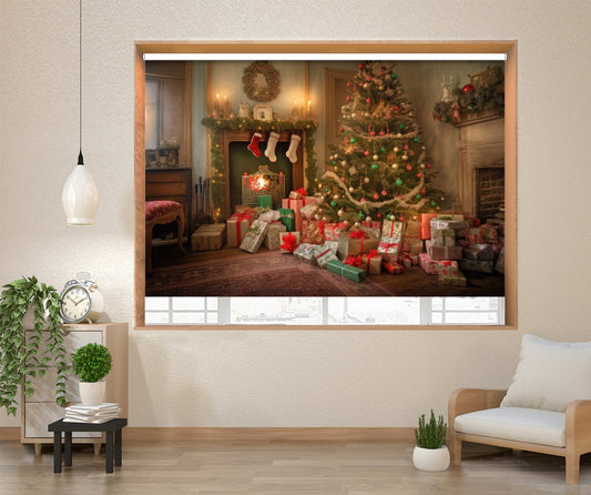 Christmas Decorations over Log Fire Painting Style Printed Picture Photo Roller Blind - RB1315