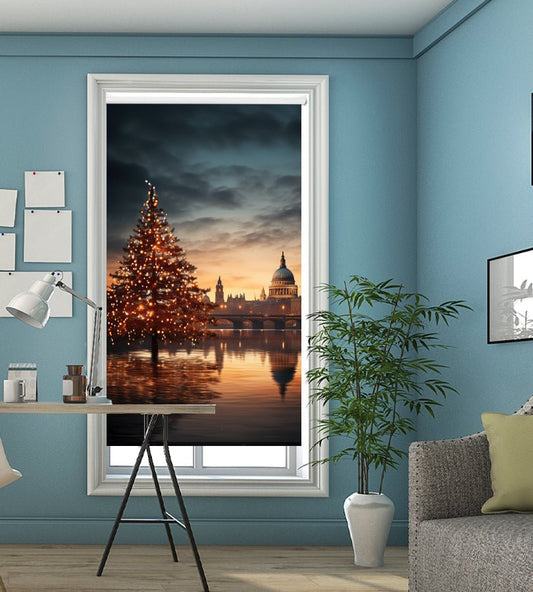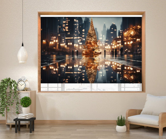 Christmas Tree in the City Festive Painting Style Printed Picture Photo Roller Blind - RB1317