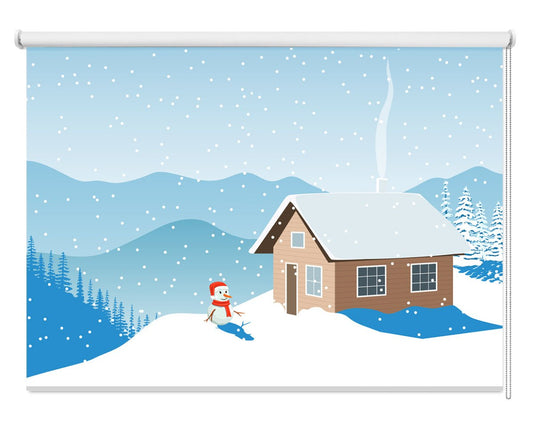 Christmas Winter scene with Snowman Printed Picture Photo Roller Blind - RB1289