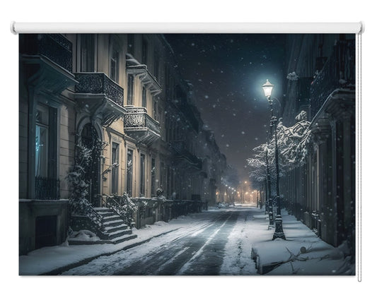 Winter Christmas Street Scene Painting Style Printed Picture Photo Roller Blind - RB1320