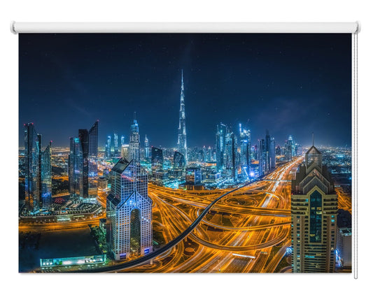 City Lights of Dubai at Night Printed Picture Photo Roller Blind- 1X1888443