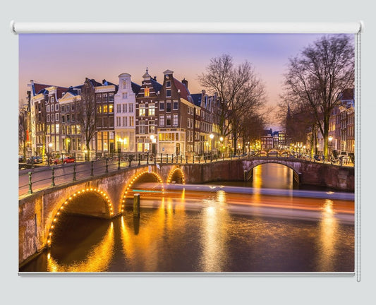 Printed Picture Photo Roller Blind Amsterdam Canals West Side At Dusk - RB1012