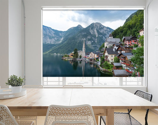 View Of Hallstatt Village In Alps At Dusk, Austria Printed Picture Photo Roller Blind - RB1004