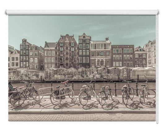 AMSTERDAM Singel Canal with Flower Market | urban vintage style Printed Picture Photo Roller Blind - 1X2727803