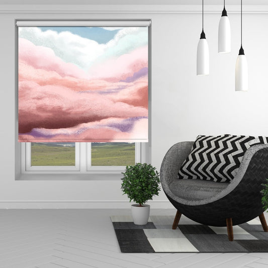Cloudy Day Peach & Blue Printed Picture Photo Roller Blind - 1X2544259