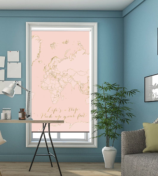 Inspirational pink and gold world map Printed Picture Photo Roller Blind - 1X2433595