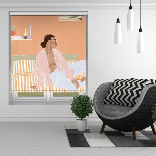 A Sip of Art Floral Peach Tone Printed Picture Photo Roller Blind - 1X24615
