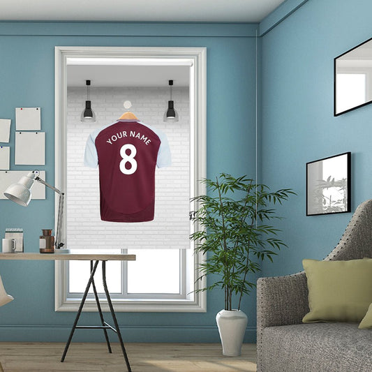 Villa Claret & Blue Style Your Name Personalised Football Kit Printed Roller Blind - RB1343