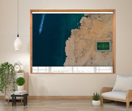 Football Pitch by the Coast Printed Picture Photo Roller Blind - 1X1734213