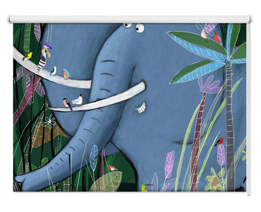 Large Elephant Peeks Out of the Jungle by Artist Carla Daly Printed Picture Photo Roller Blind - 1X2893057