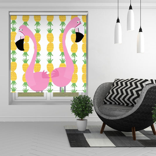 Two Flamingos with Pineapples by Artist Carla Daly Printed Picture Photo Roller Blind - 1X2898629