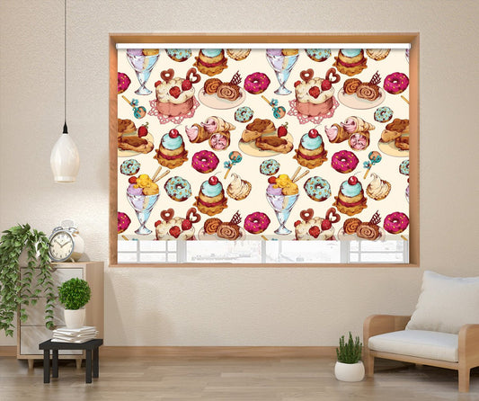 Cakes & Ice Cream Repeat Pattern Printed Picture Photo Roller Blind - RB1280