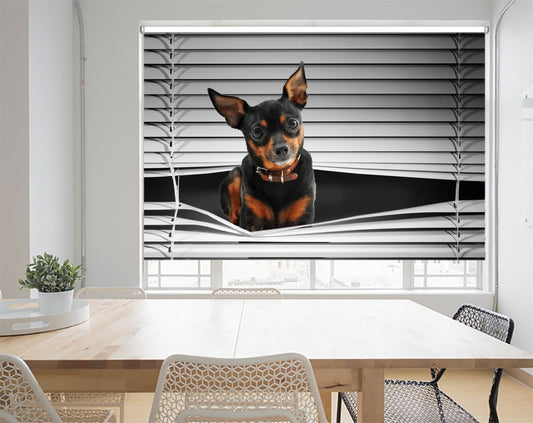 Miniature Pinscher Peeking through the blind© Printed Picture Photo Roller Blind - RB1134