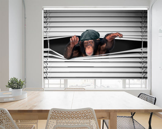 Monkey Wearing Peak Cap Peeking through the blind Printed Picture Photo Roller Blind - RB1277