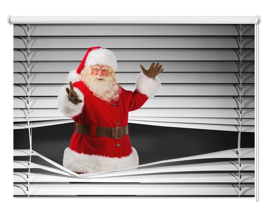 Peeking Father Christmas Through the Blind© Printed Picture Photo Roller Blind - RB11534