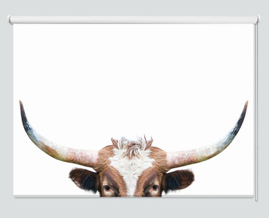 Peeking Longhorn Cow Printed Picture Photo Roller Blind - 1X2381981