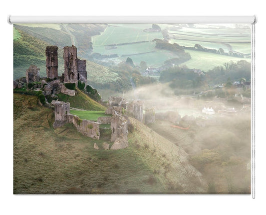Corfe Castle On A Foggy Autumn Morning Printed Roller Blind - RB1124
