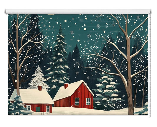 Red Houses and Snowy night sky Printed Picture Photo Roller Blind - 1X2925902