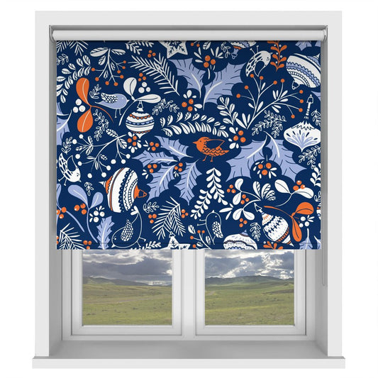Wonderful Mistletoe Christmas Joy Blue pattern Printed Picture Photo Roller Blind - 1X2930226
