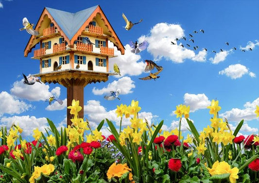 Bird Box Meadow Floral Nature Scene Printed Picture Photo Roller Blind - RB583