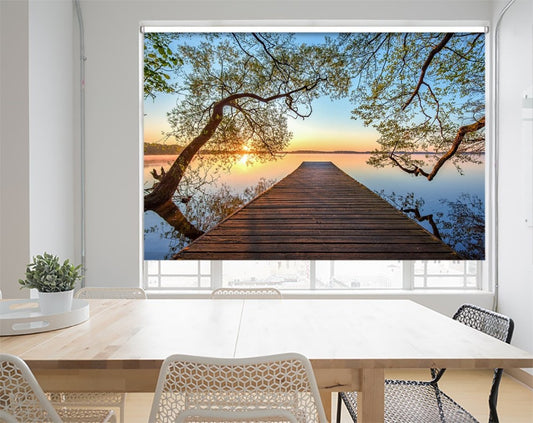 Wooden Jetty Sunset Lake Printed Picture Photo Roller Blind- 1X55446