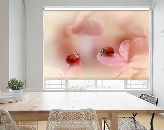 Ladybirds On Pink Hydrangea Printed Picture Photo Roller Blind - 1X1037027