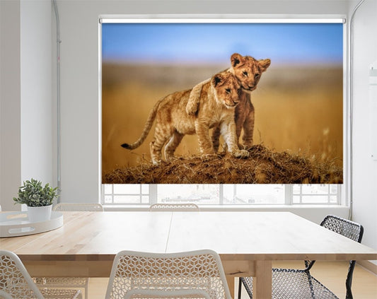 Lion Cubs Embrace Printed Picture Photo Roller Blind - 1X539461