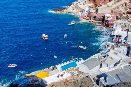 Aerial View Of The Old Harbour of the Village Of Oia On Santorini Bay Printed Photo Picture Roller Blind - RB727