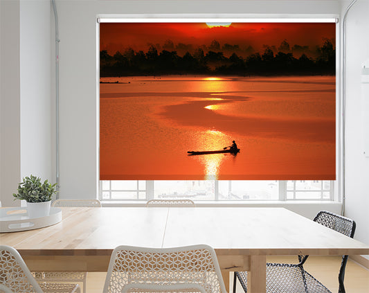 Rowing Alone at Sunset Printed Picture Photo Roller Blind - 1X51539