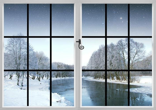 Window View of the frozen Lake Winter scene Printed Picture Photo Roller Blind - RB590