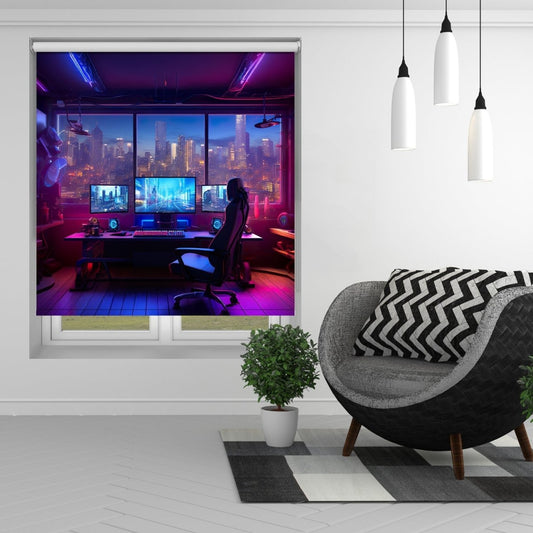 Cyber Space Neon Gaming Room Printed Picture Photo Roller Blind - RB1344