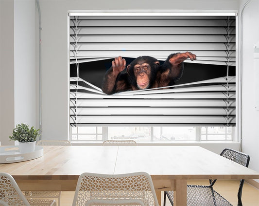 Monkey peeking through the blind© Black & White Printed Picture Photo Roller Blind - RB1152