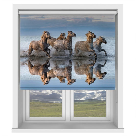 Horses and reflection in the Sea Printed Picture Photo Roller Blind - 1X1217506