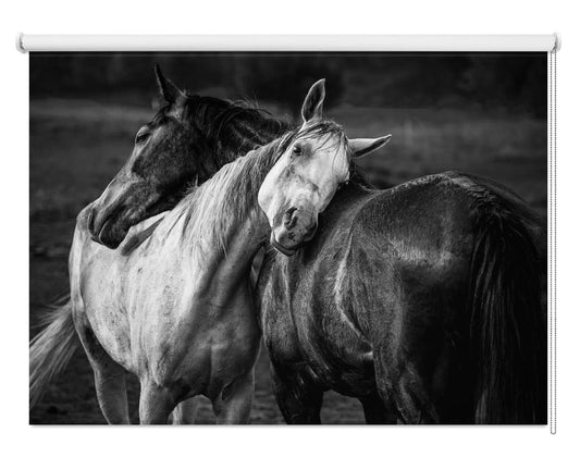 Warm rain Black & White Horses Printed Picture Photo Roller Blind - 1X1579809