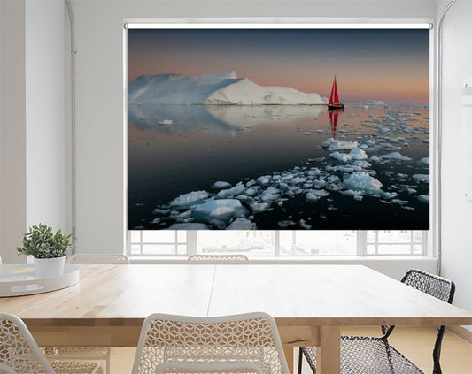 Sailing Boat on the Iceberg Sea Printed Picture Photo Roller Blind- 1X1693254