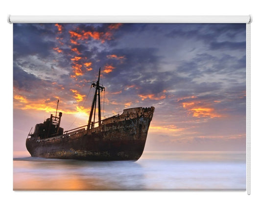 Sunrise over the Shipwreck Printed Picture Photo Roller Blind- 1X36649