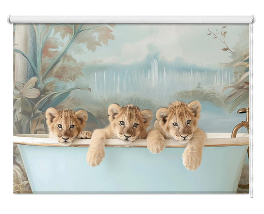 Lion Cubs in the Bath Printed Picture Photo Roller Blind - 1X3062992