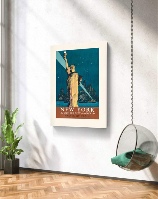 New York, the Wonder City of the World Travel By Train (1927) Vintage Travel Poster Canvas Print Picture Wall Art - 1X2565618