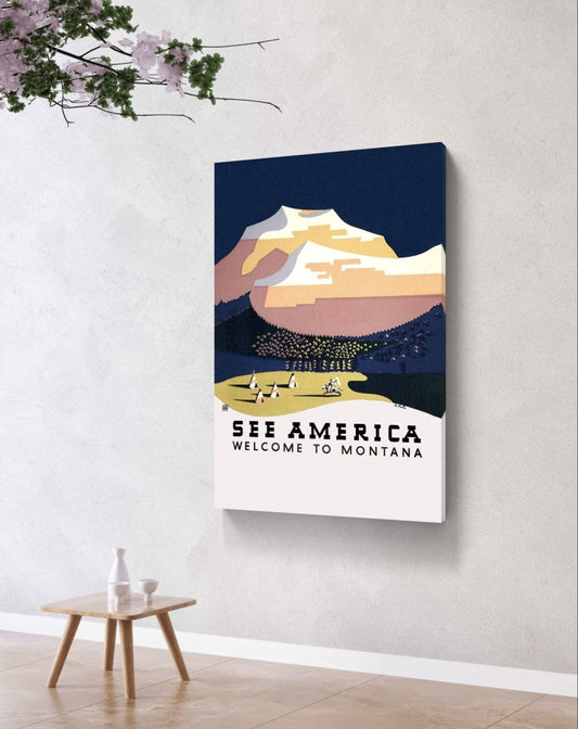 See America 🇺🇸 Welcome To Montana (1936) Vintage Travel Poster Canvas Print Picture Wall Art - 1X2565624