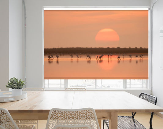 Flamingos At Sunrise Printed Picture Photo Roller Blind- 1X930319