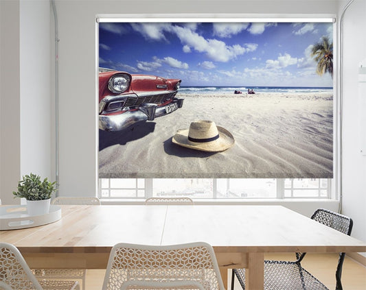 Tropical Beach Car Scene Printed Picture Photo Roller Blind- 1X1247963