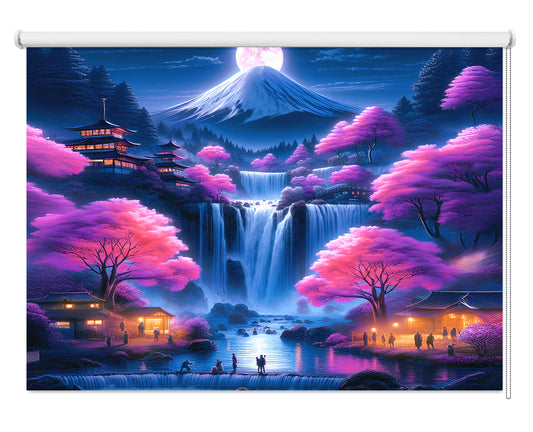 Moonshine village & Waterfall Printed Picture Photo Roller Blind - 1X2729686