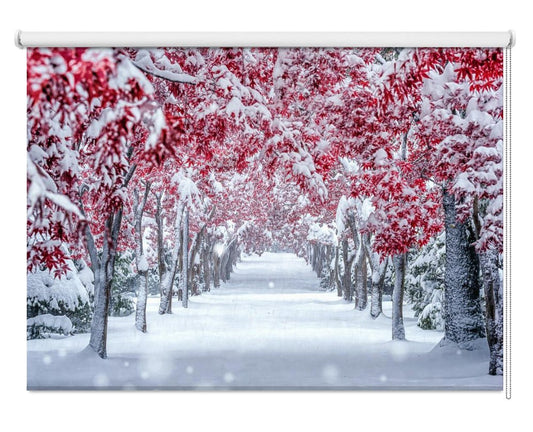 Winter Snow over the Japanese Maple Printed Picture Photo Roller Blind - 1X1951569